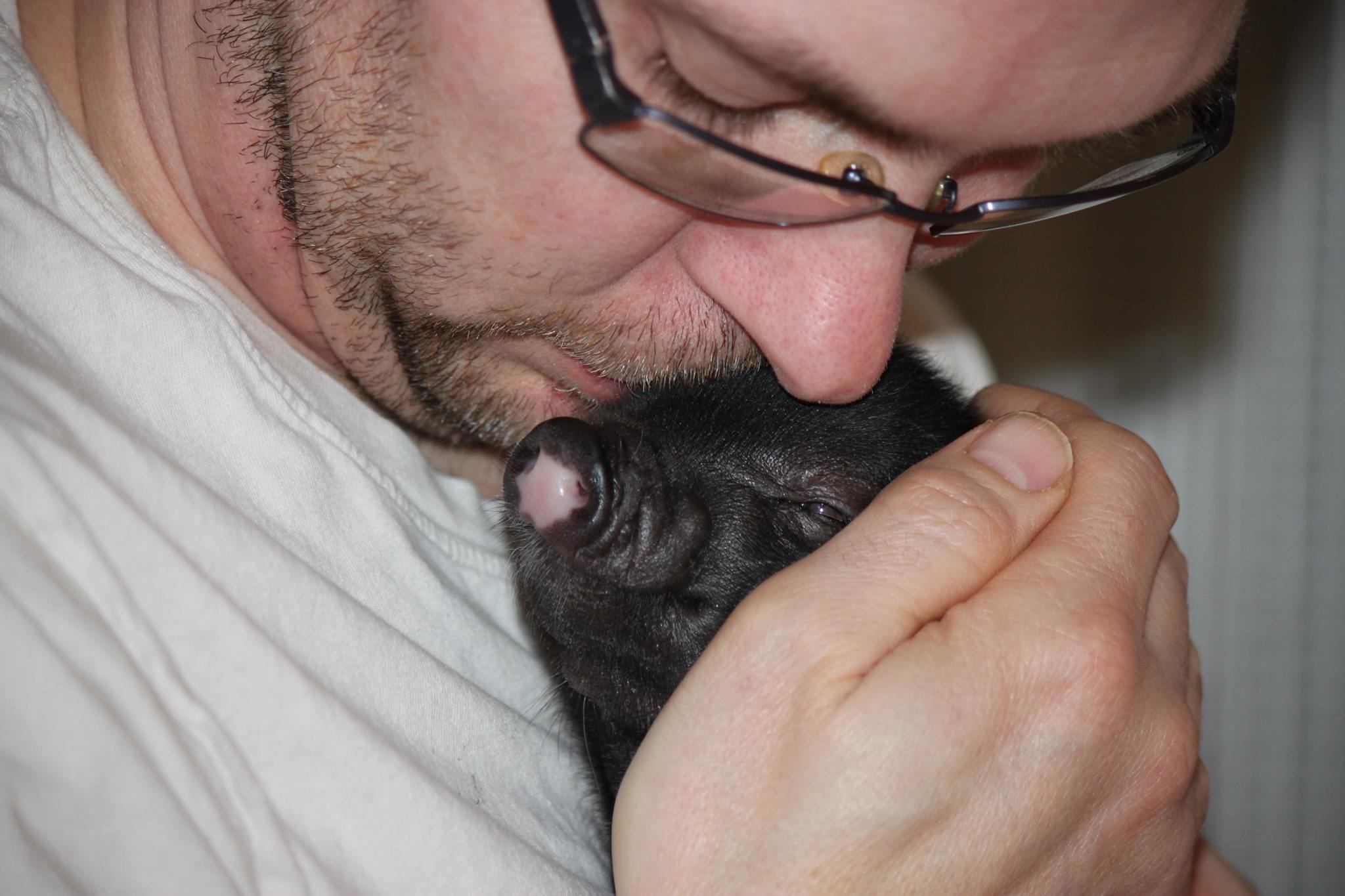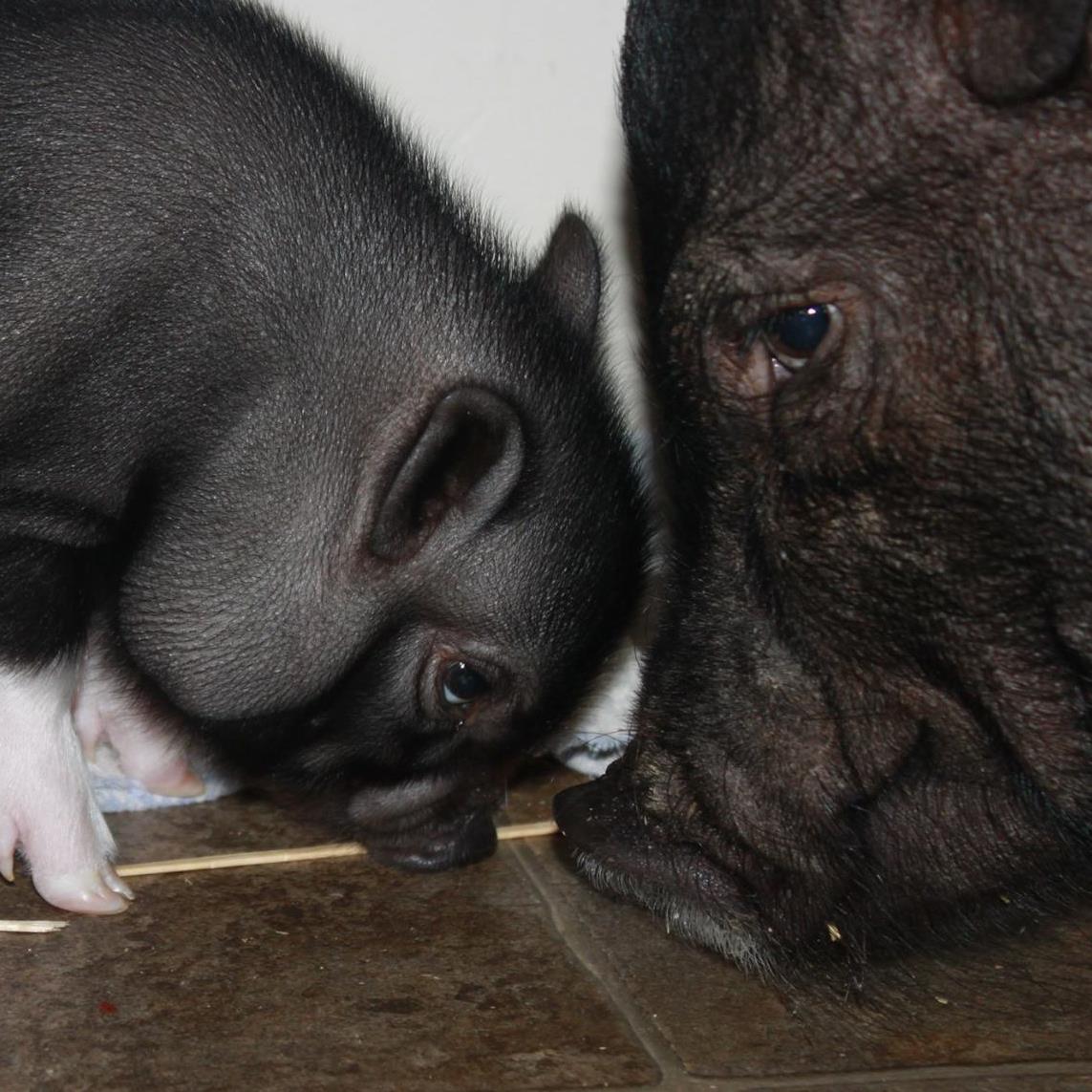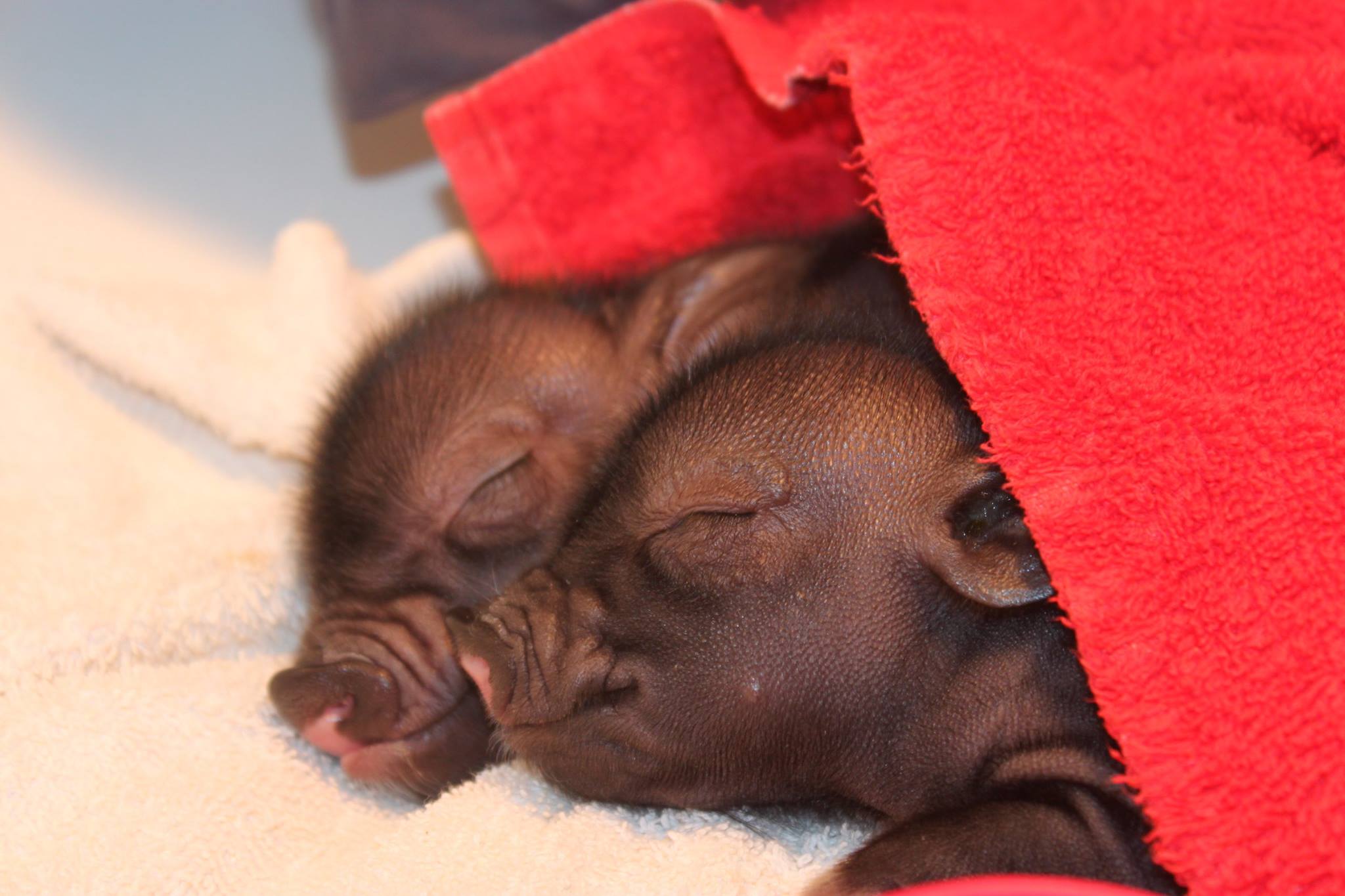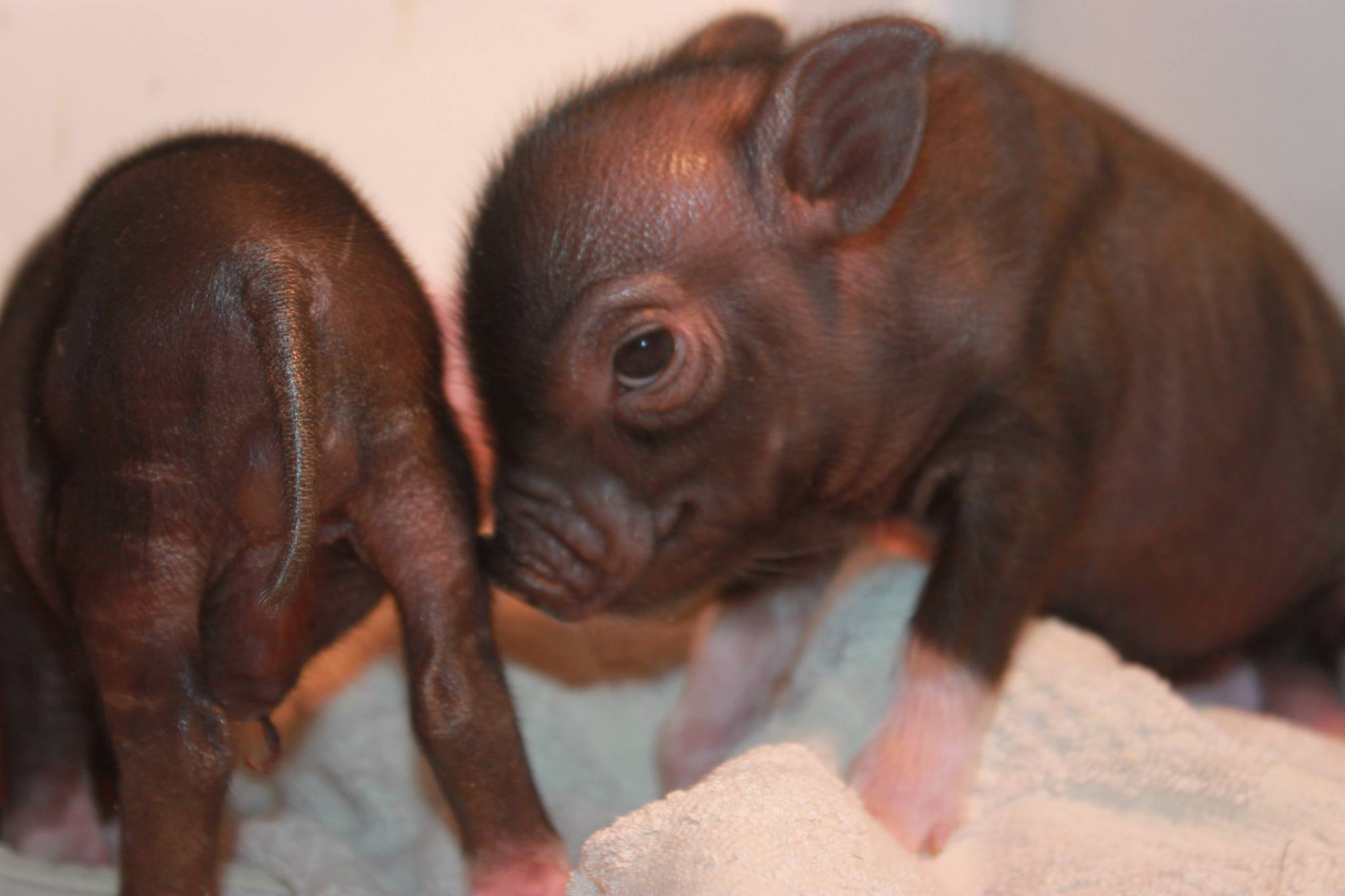 They were just born a few weeks ago to Mya, the Pot-bellied pig. There were 3 to begin but sadly, the first female of the litter, was not able to grasp life.